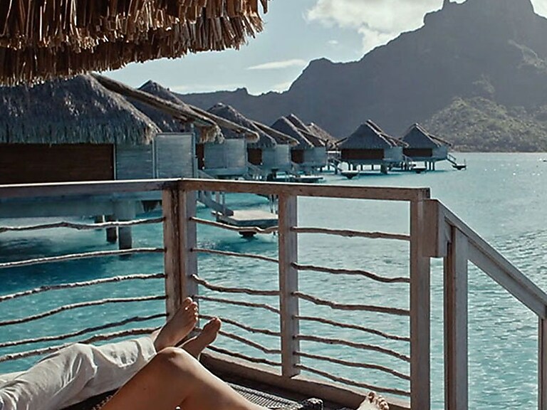 Wedding white is definitely fair game on the honeymoon. And this daring floral lace set? So sexy.